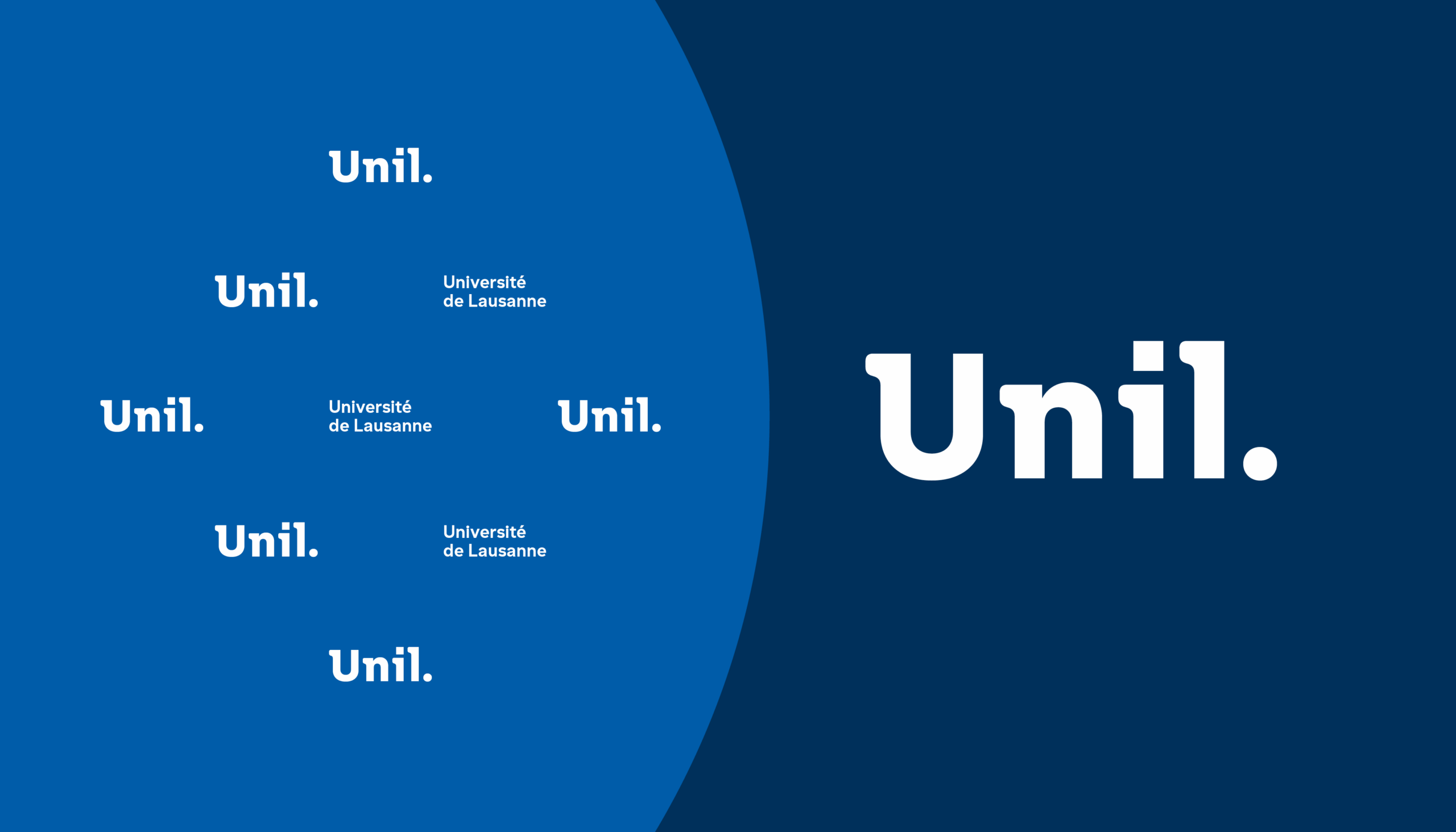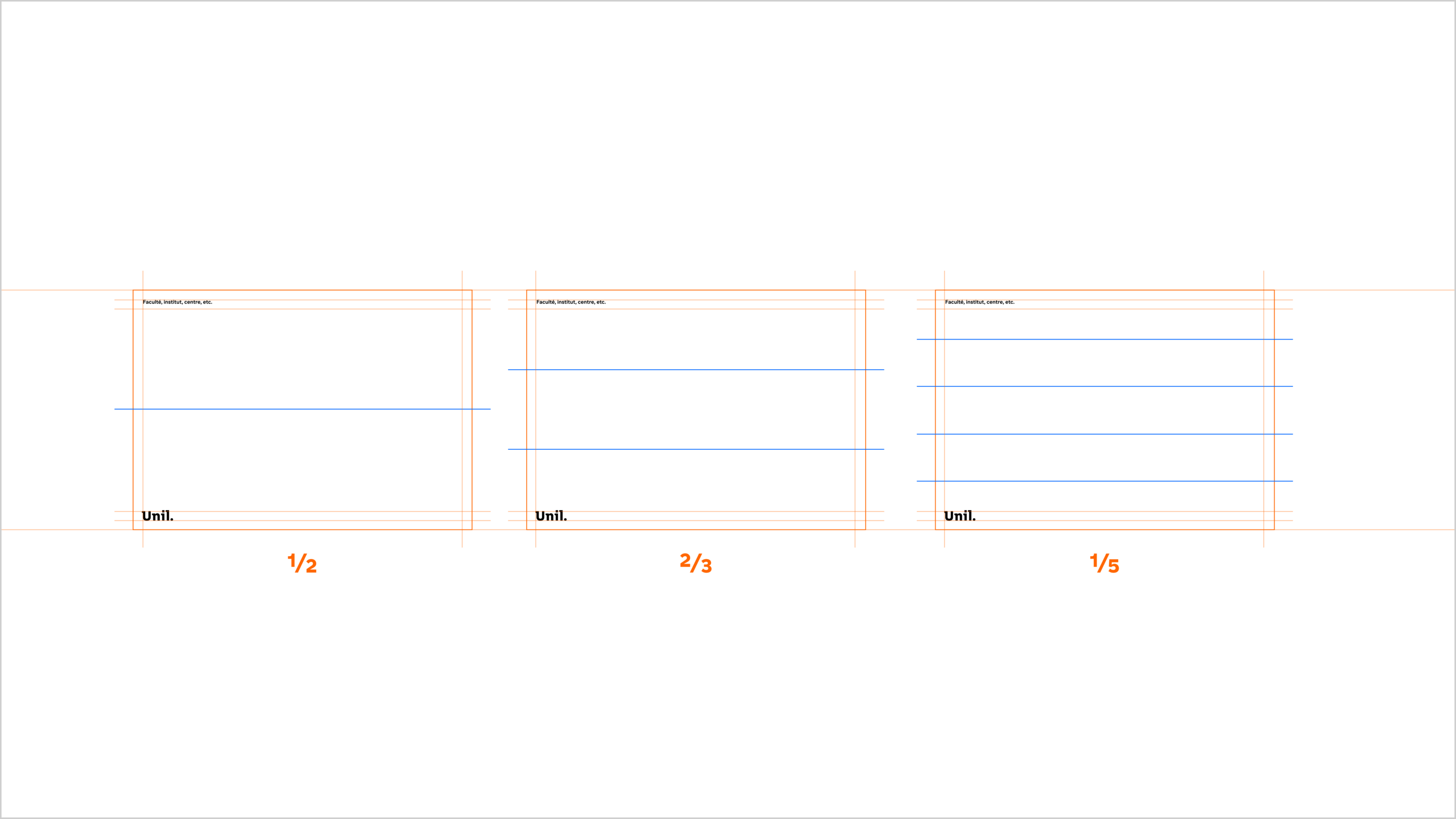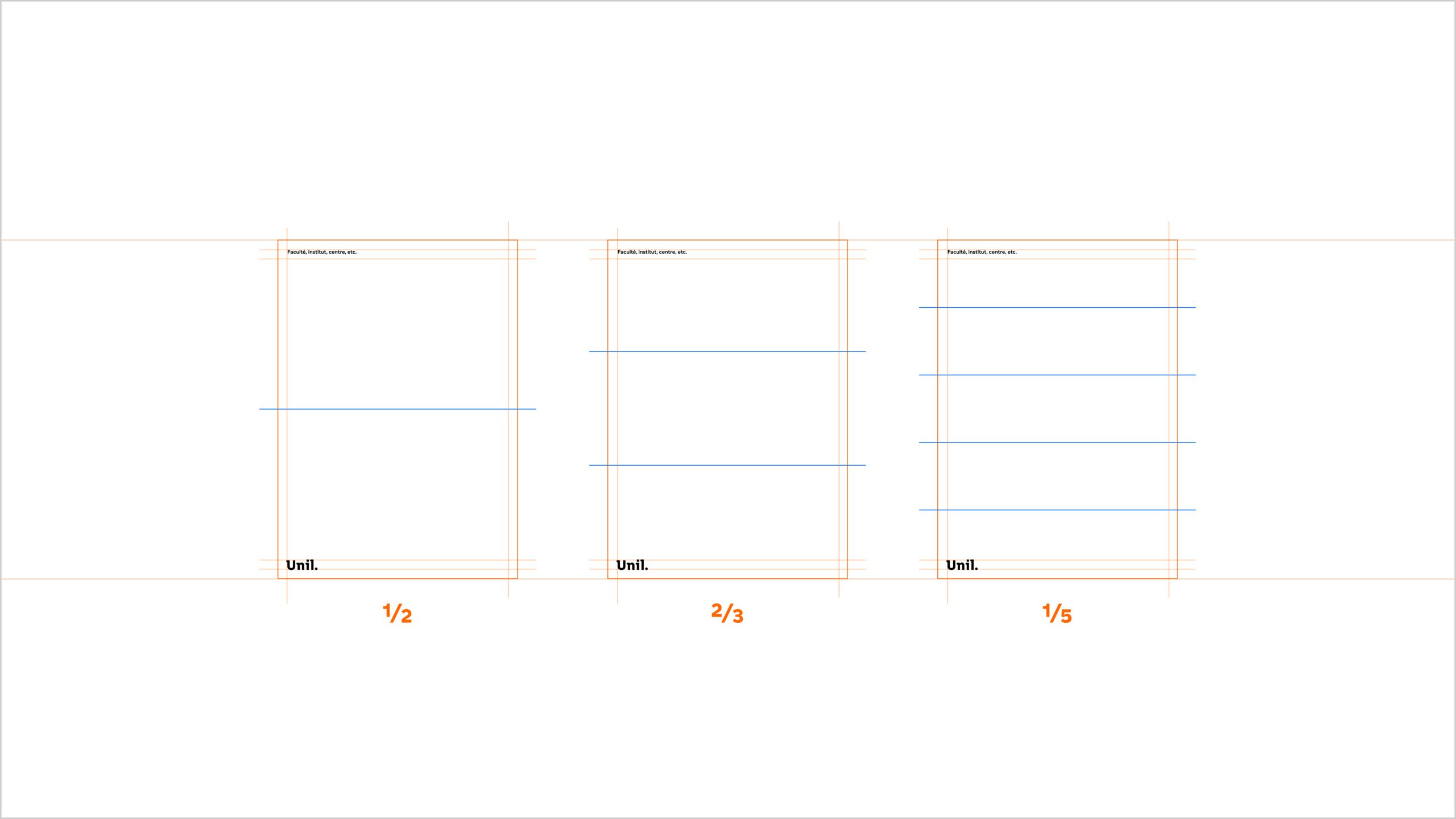 Le principe de mise en page de l’Unil repose sur une division claire et maîtrisée de l’espace. Il s’appuie sur une logique modulaire simple, fondée sur la répartition de zones visuelles — qu’il s’agisse d’images ou de fonds colorés.